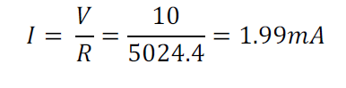 We know the voltage of the circuit shall be 10Vdc and the circuit resistance is: