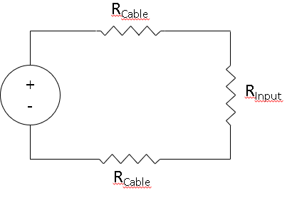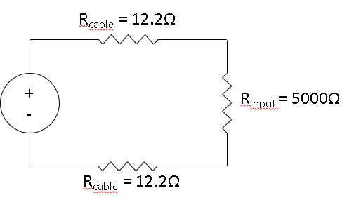 Now, we know the cable resistance and the resistance of the input, the circuit resistance can now be added: