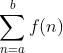 Where n is the index of summation, a is the index of the first value of n, b is the index of the last value of n and f(n) is the function carried out on n as part of the summation.